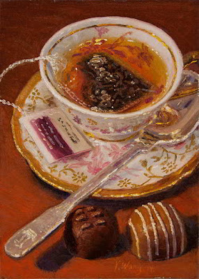 В чайных натюрмортах художник изображает самые простые и обыденные предметы: чайник, чашку чая и даже чайный пакетик. Но его работы наполнены положительными эмоциями и учат ценить каждый миг жизни, даже если все, что у вас есть сейчас - это чашка горячего чая.